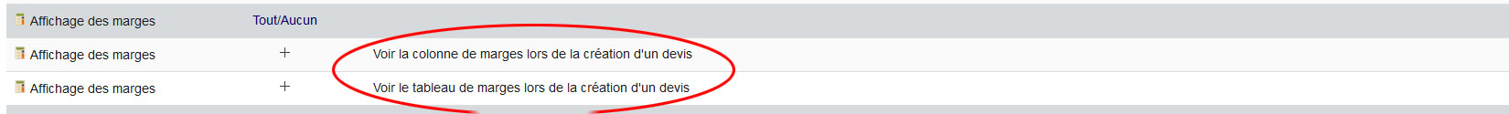 - Le module « Affichage des marges » donne deux droits supplémentaires
